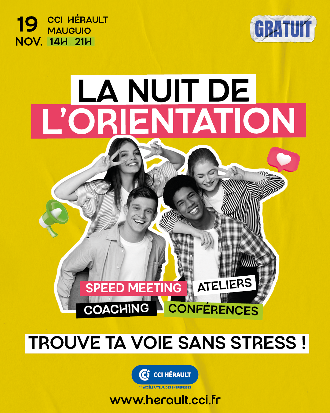 Collégiens (et parents), venez préparer votre choix d'orientation en participant à la "Nuit de l'orientation", mercredi 19 novembre à la CCI de l'Hérault à Mauguio, de 14h à 21h.